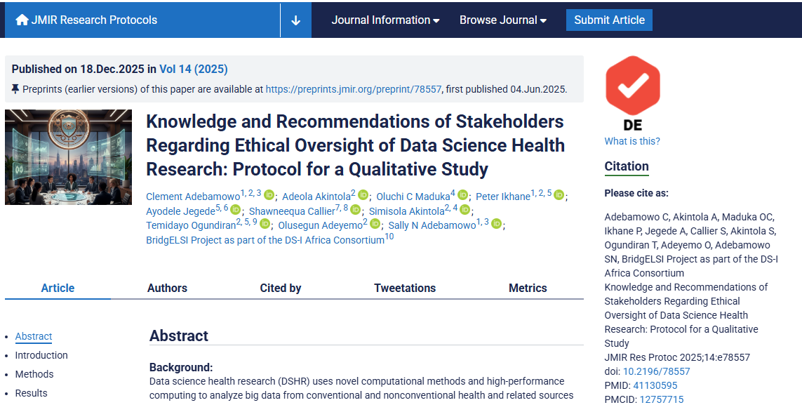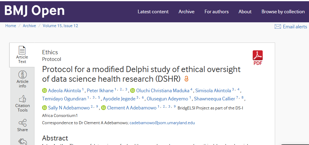 The Bridging Gaps in the ELSI of Data Science Research (BridgELSI) Project is a collaborative research ethics study and training project that is focused on bridging the gaps in current governance framework on ethical oversight of data science health research by engaging key stakeholders to evaluate and co-develop novel governance framework for the Ethical Legal and Social Implications (ELSI) of data science health research in Nigeria. The project will implement short and medium-term training on ethics of data science for data scientists, ethicists and ethics committees, and strengthen the ethical working environment for data science health research in Nigeria.